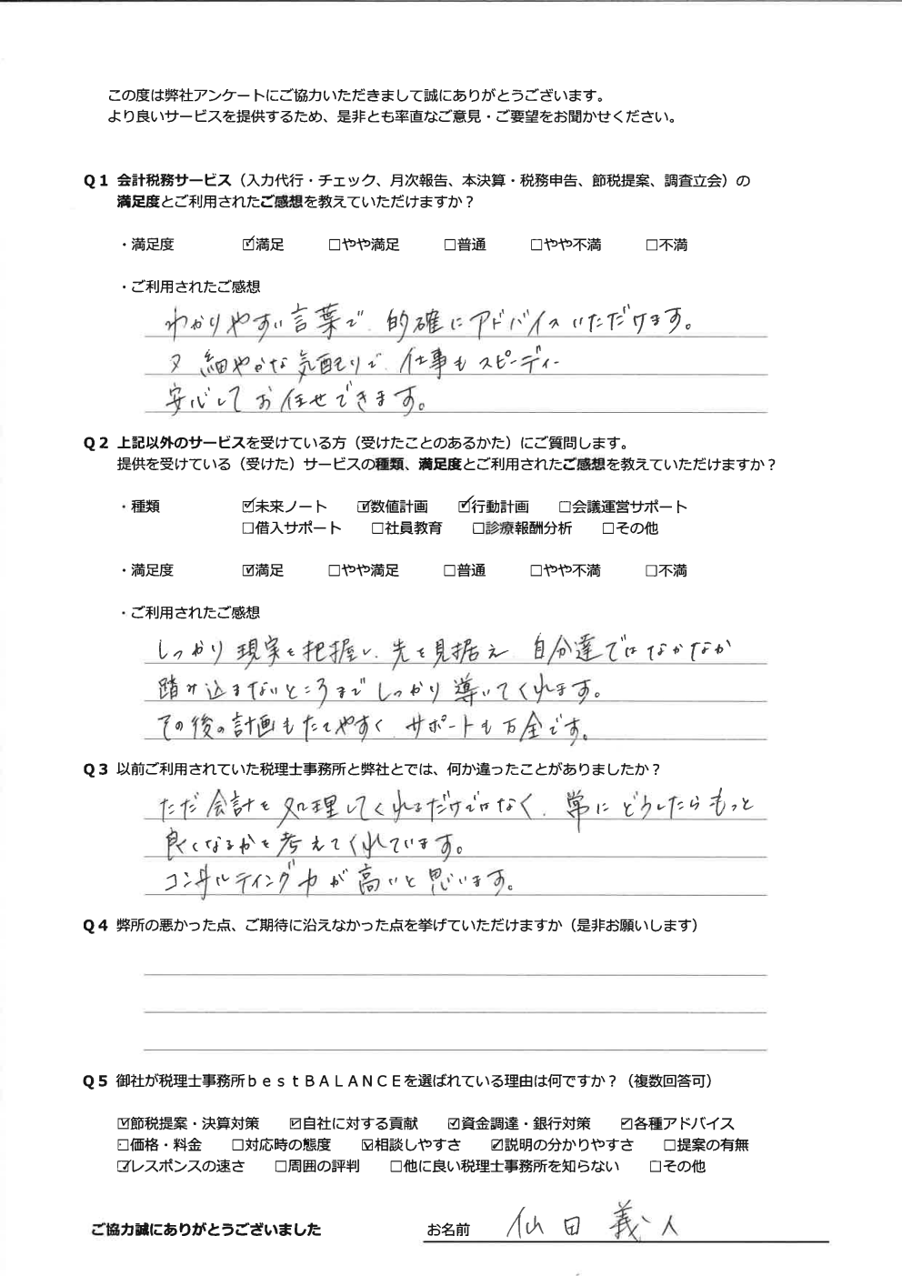 ただ会計を処理してくれるだけではなく、常にどうしたらもっと良くなるかを考えてくれています。 コンサルティング力が高いと思います。